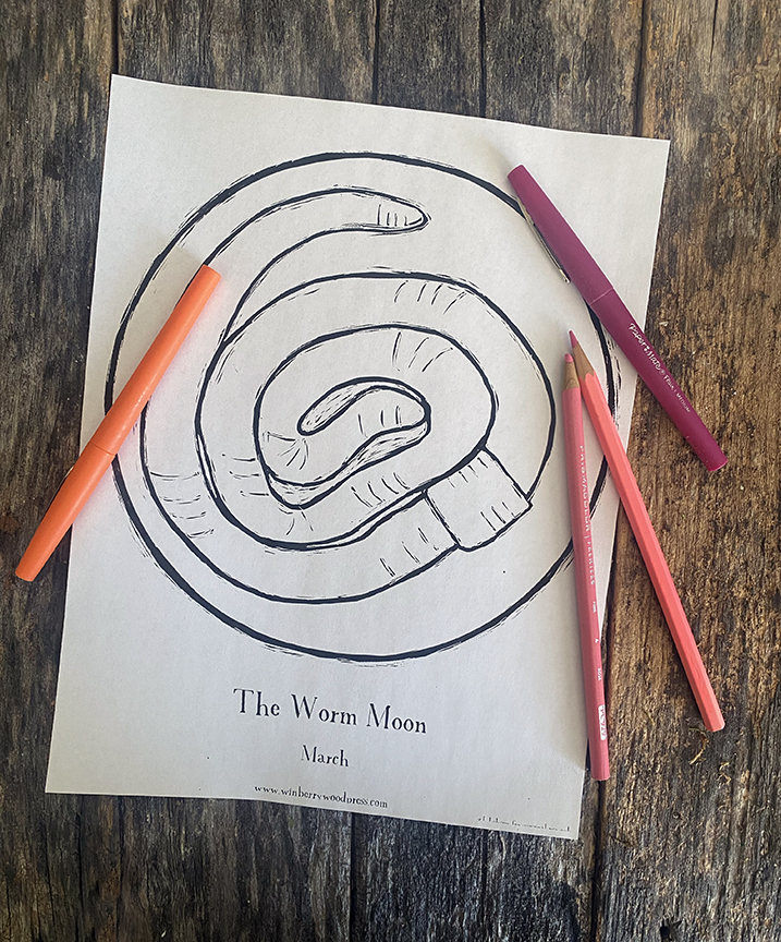 Worm Moon Coloring Page